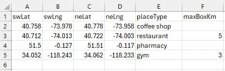 swLat, swLng, neLat, neLng, placeType, [maxBox]